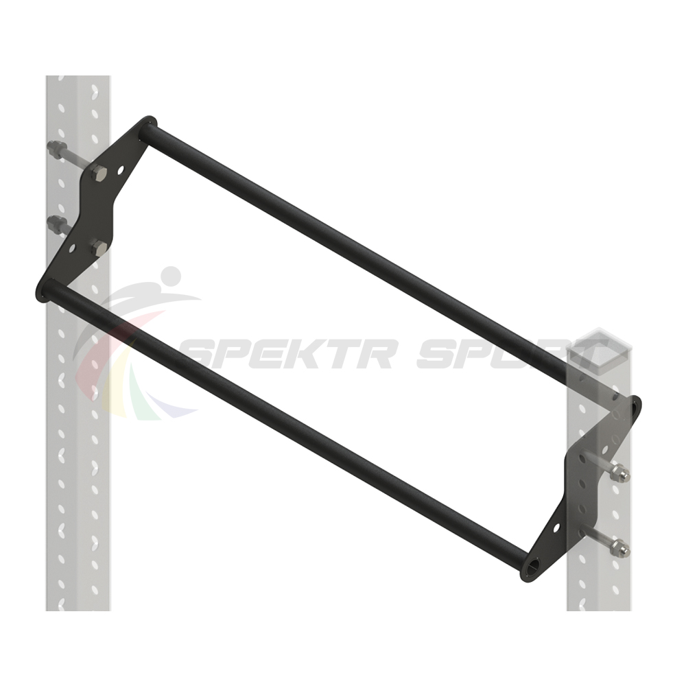Перекладина устанавливается между 2мя опорными стойками, она имеет 2 перекладины с разницей в 20см. Таким образом она экономит и место, и служит за место 2-ух перекладин.